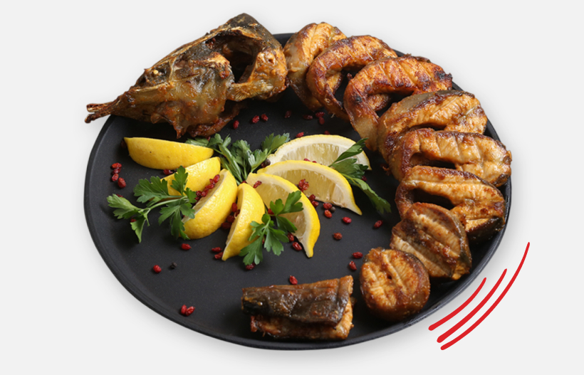 Ստերլեդ (ամբողջական) 9-11 կտոր, լավաշ, 1 հատ կիտրոն